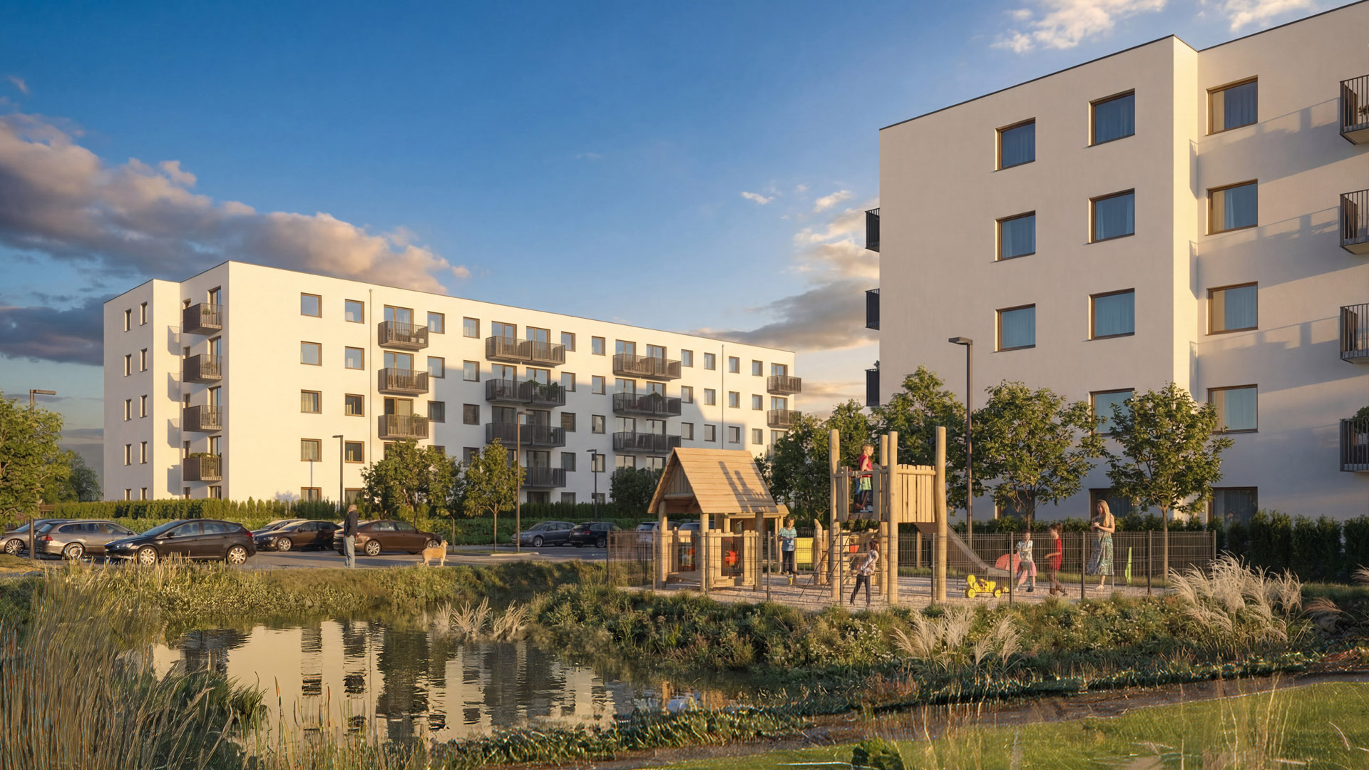 The intimate scale of the development helps ensure peace and a sense of security compared to large complexes. The functional layouts of the apartments allow you to plan your space comfortably—there is room for a shared dining table, spacious wardrobes, and a corner just for relaxation.
